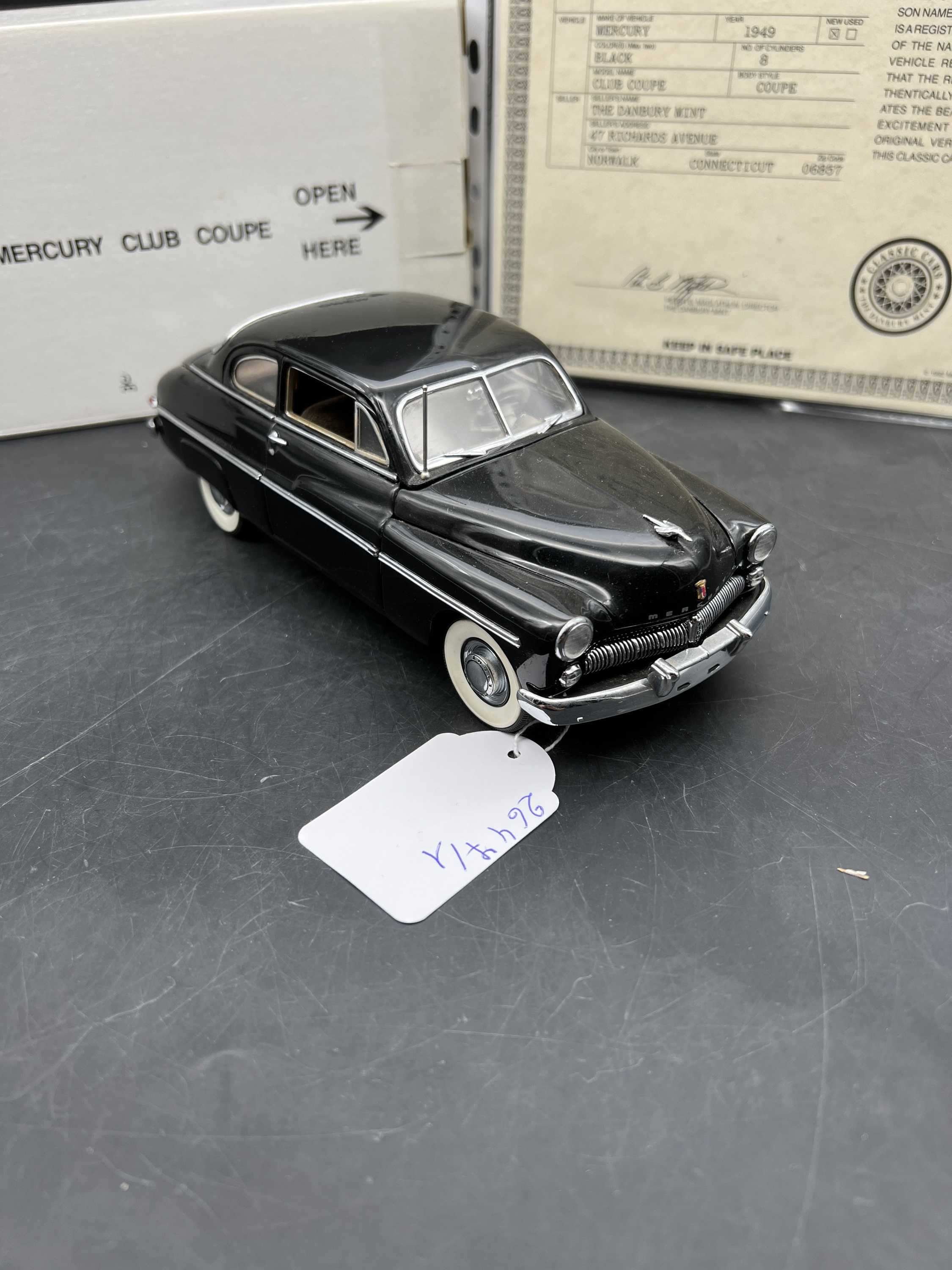 Danbury Mint Model 1/24è, voiture Mercury noire coupé 1949, boîte + certificat + explicatif
