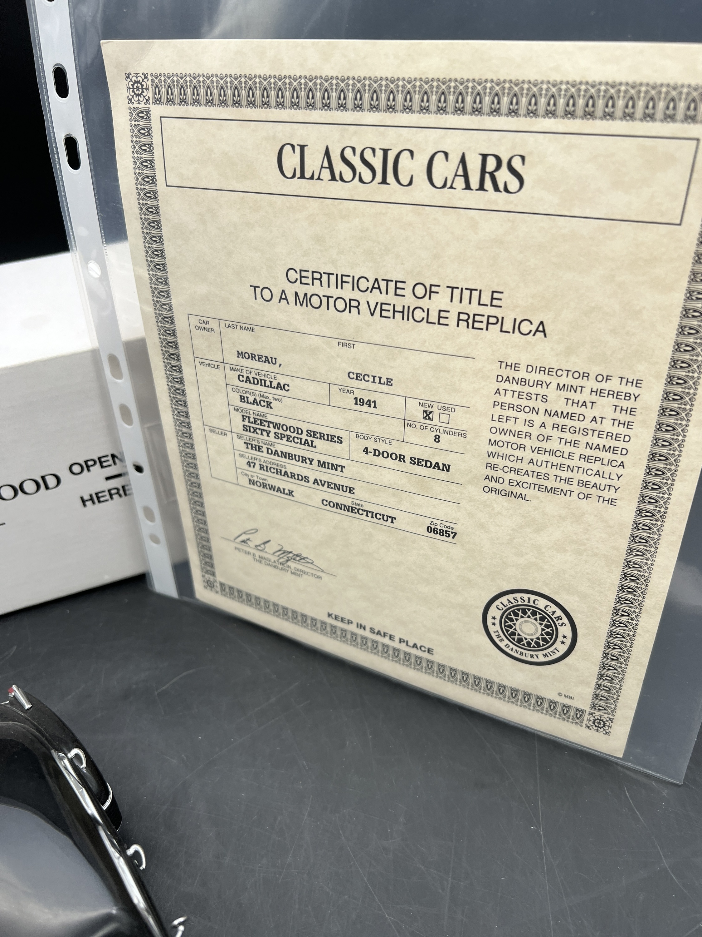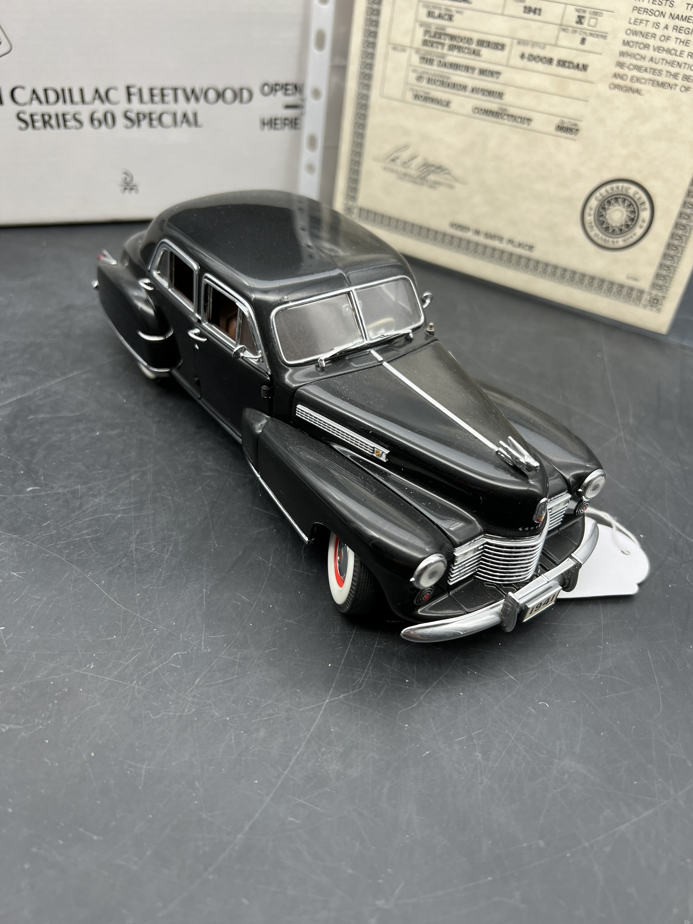 Danbury Mint Model 1/24è, voiture Cadillac Fleetwood series sixty special noir 1941, 4-door sedan, boîte + certificat