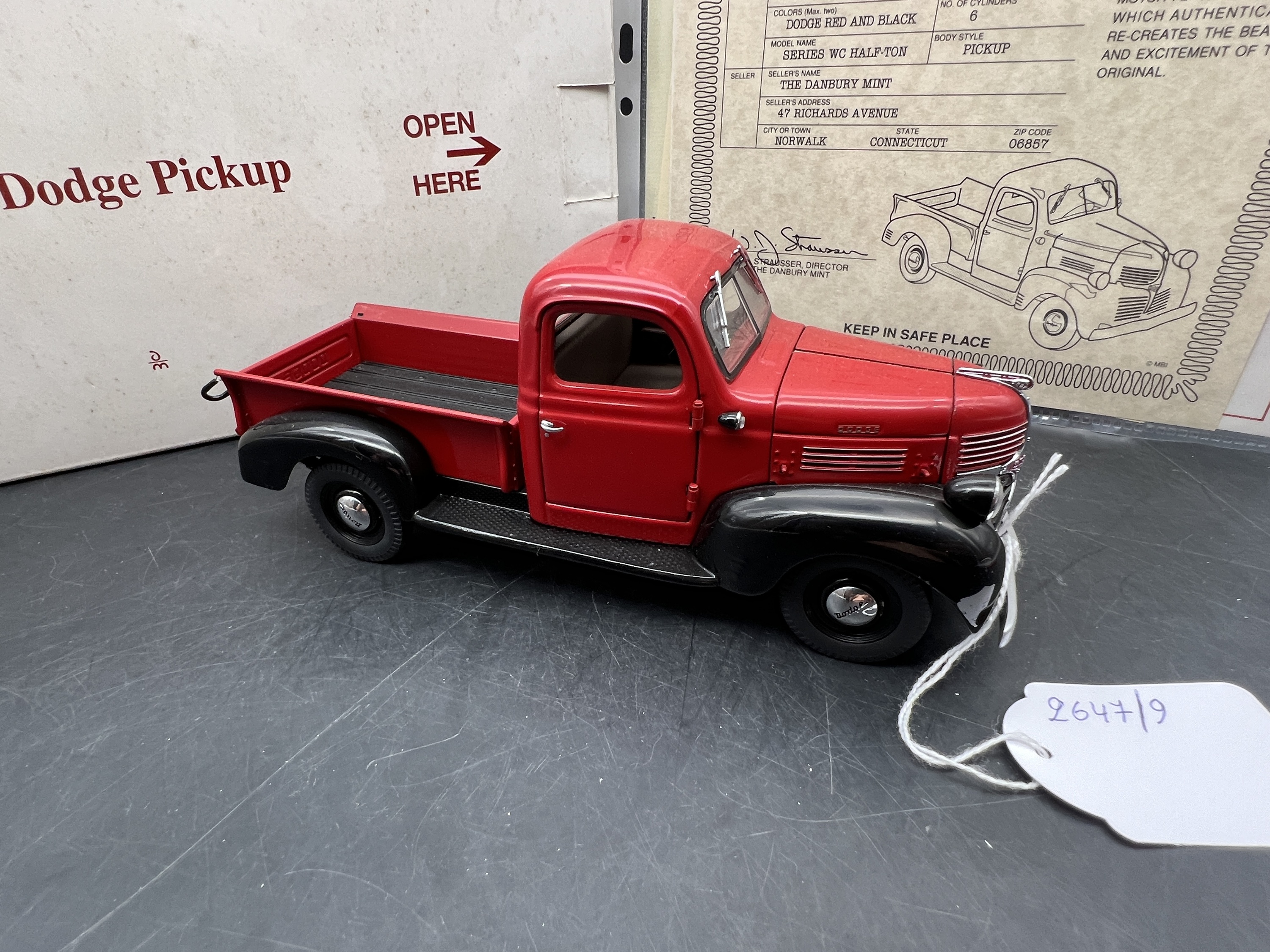 Danbury Mint Model 1/24è, voiture Dodge série WC Half-ton rouge et noir Pickup 1941, boîte + certificat + explicatif