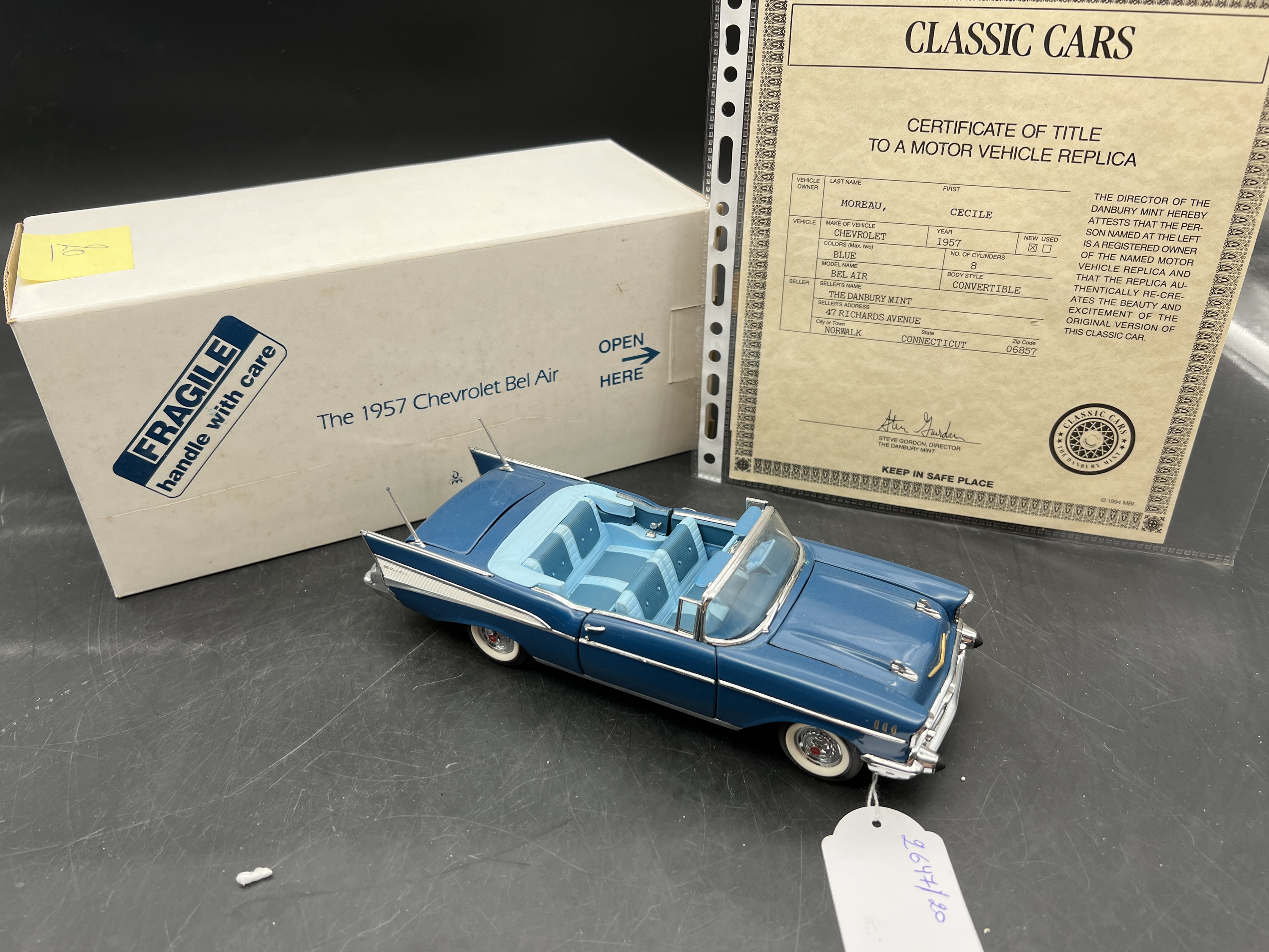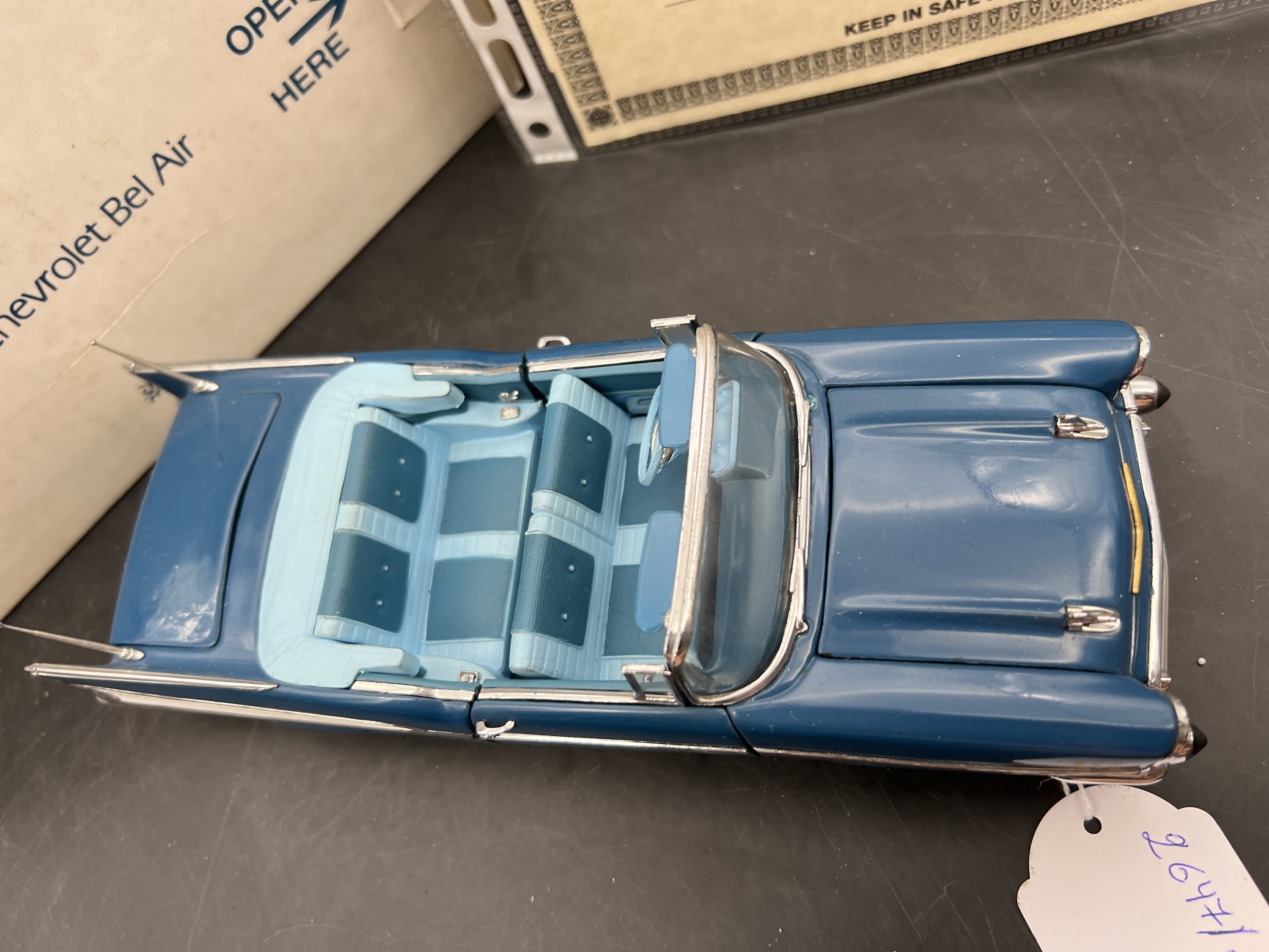 Danbury Mint Model 1/24è, Voiture Chevrolet Bel Air Blue 1957, boîte + certificat