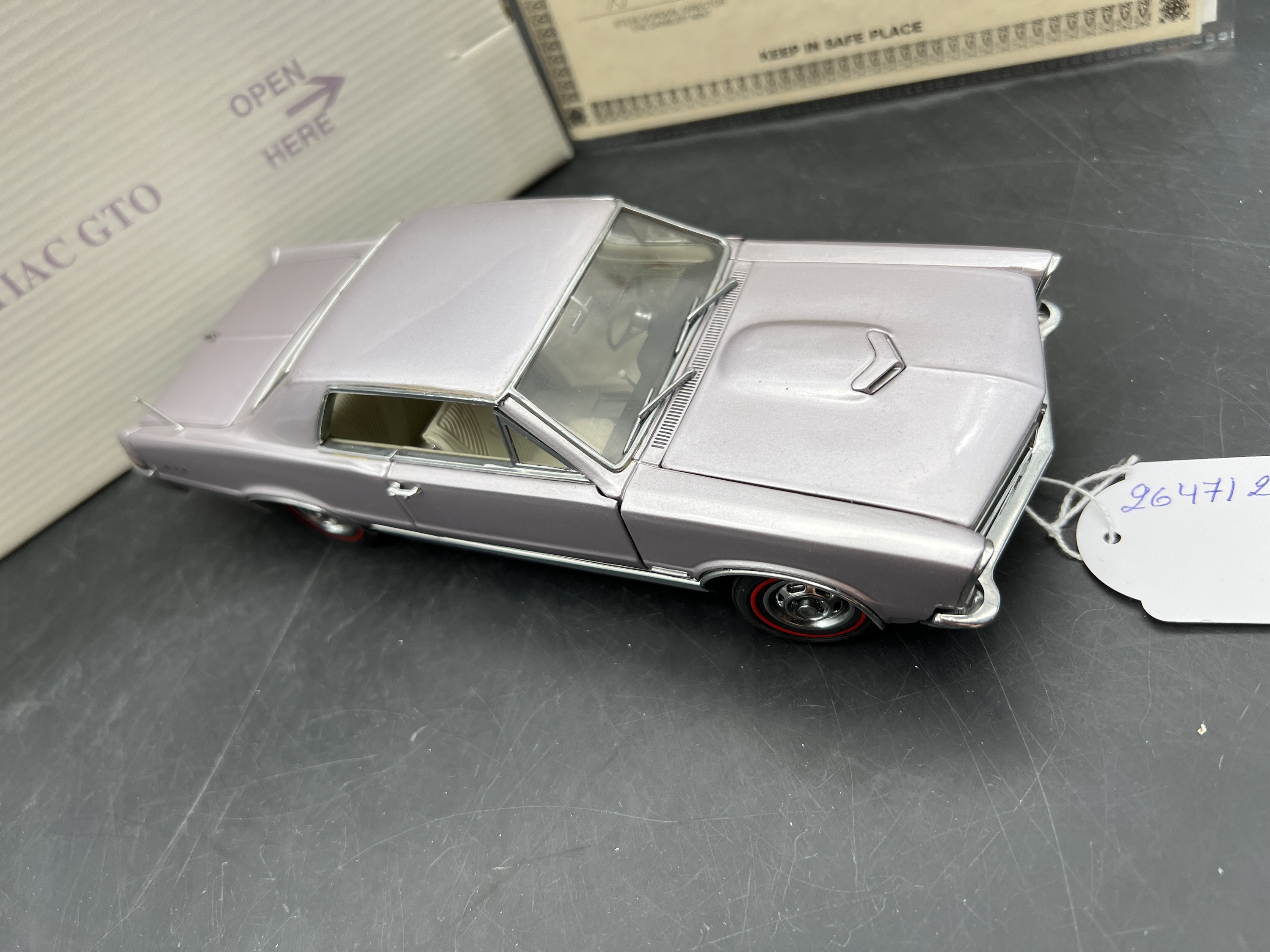 Danbury Mint Model 1/24è, Voiture Pontiac GTO 1965 Iris Mist coupé, boîte + certificat