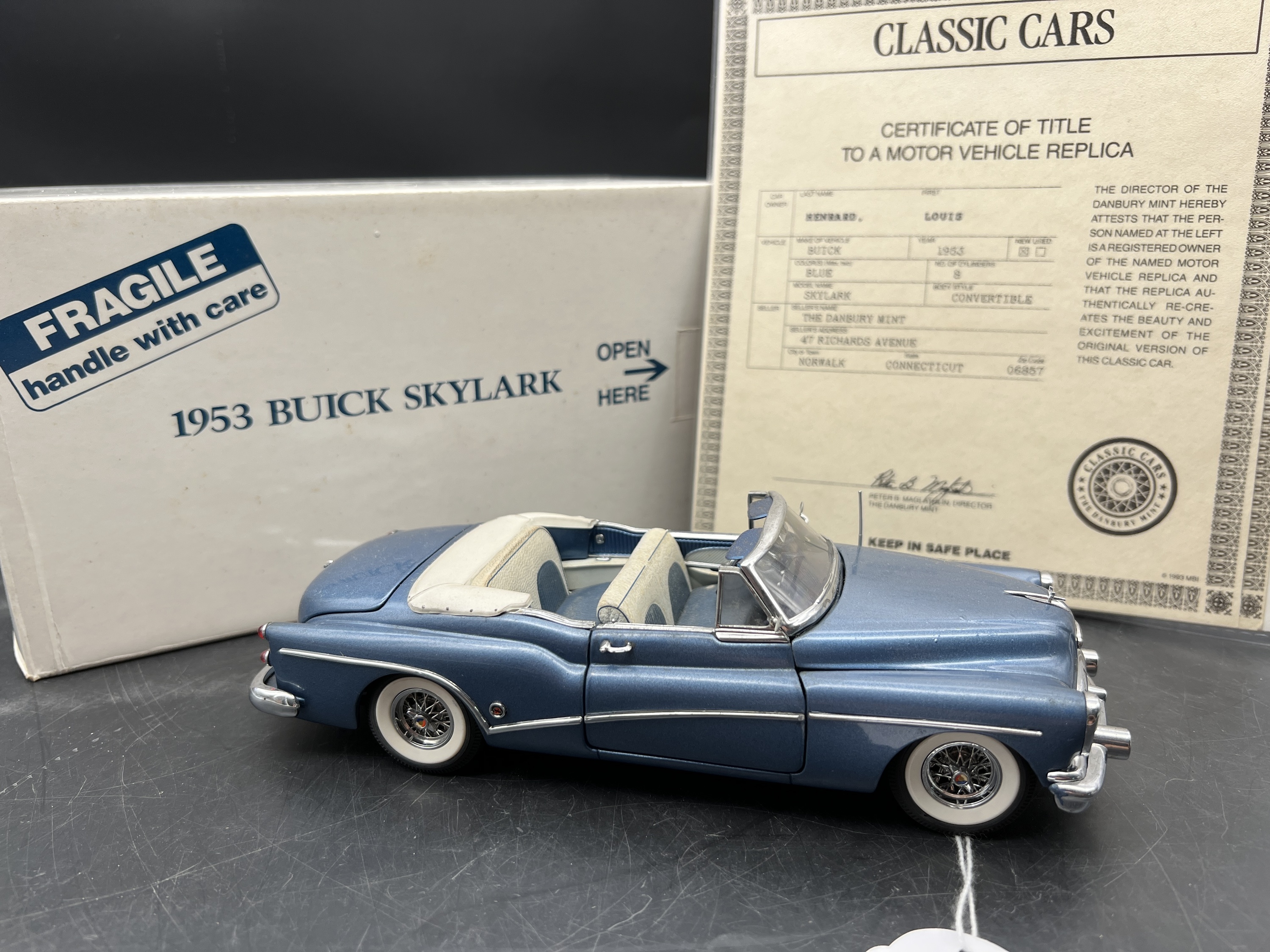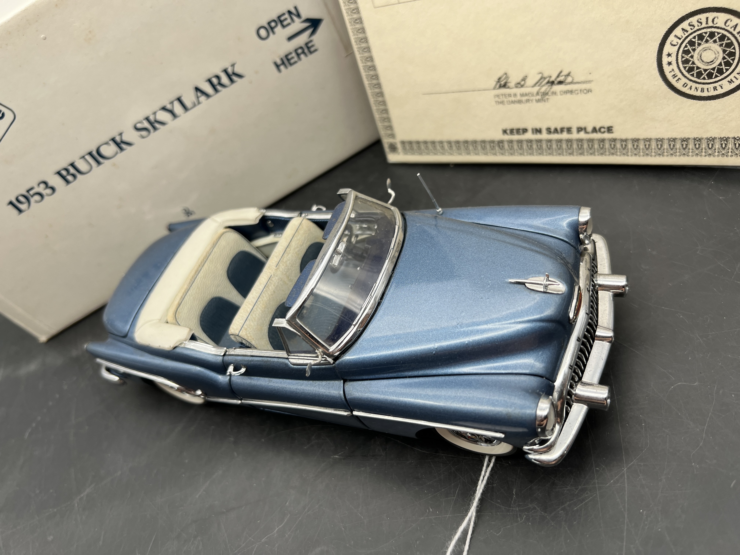 Danbury Mint Model 1/24è, Buick Skylark convertible blue 1953, boîte + certificat + explicatif