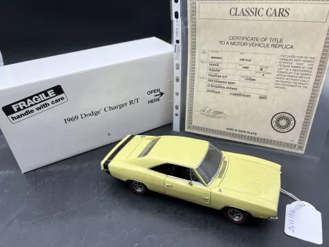 Danbury Mint Model 1/24è, Dodge Charger R/T coupé Yellow 1969, boîte + certificat