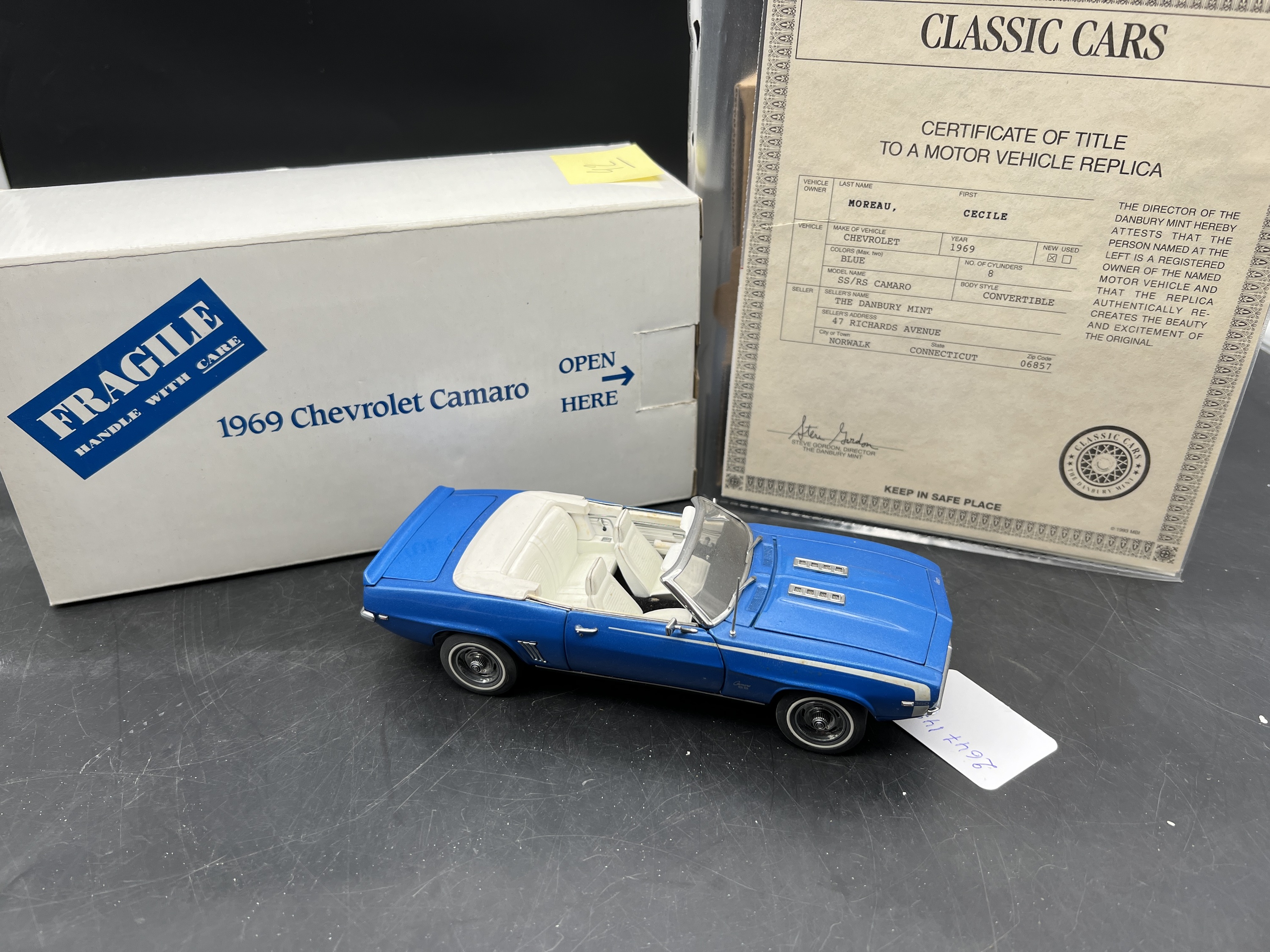 Danbury Mint Model 1/24è,Chevrolet Camaro 1969 Blue, boite + certificat