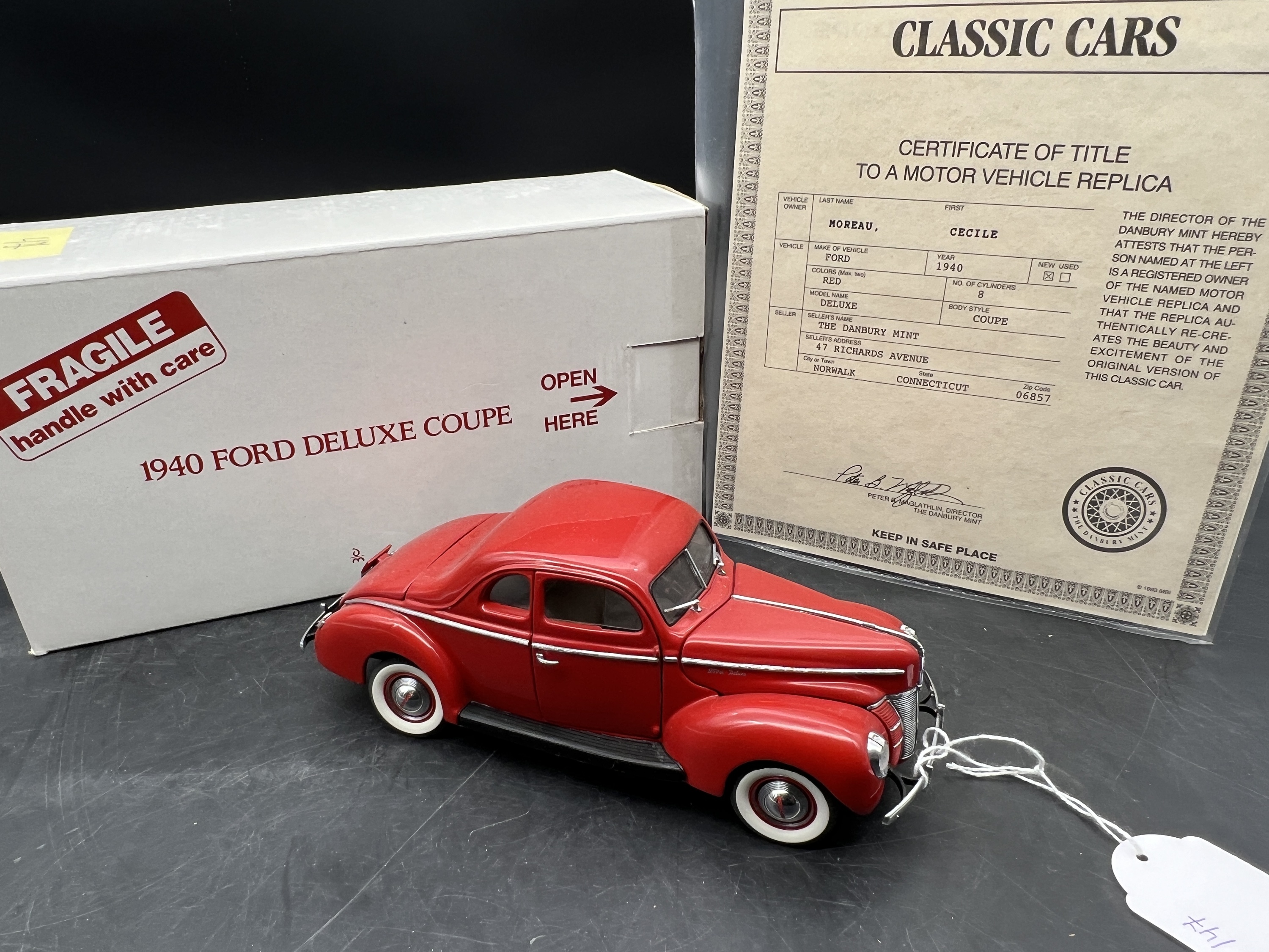 Danbury Mint Model 1/24è, Voiture Ford de luxe coupé Red 1940, boite + certificat
