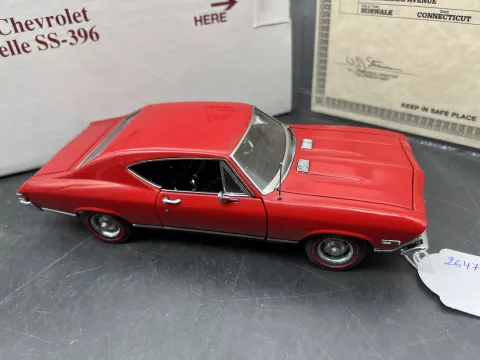 Danbury Mint Model 1/24è, Voiture Chevrolet chevellle SS 396 coupé Red/black 1968, boite + certificat