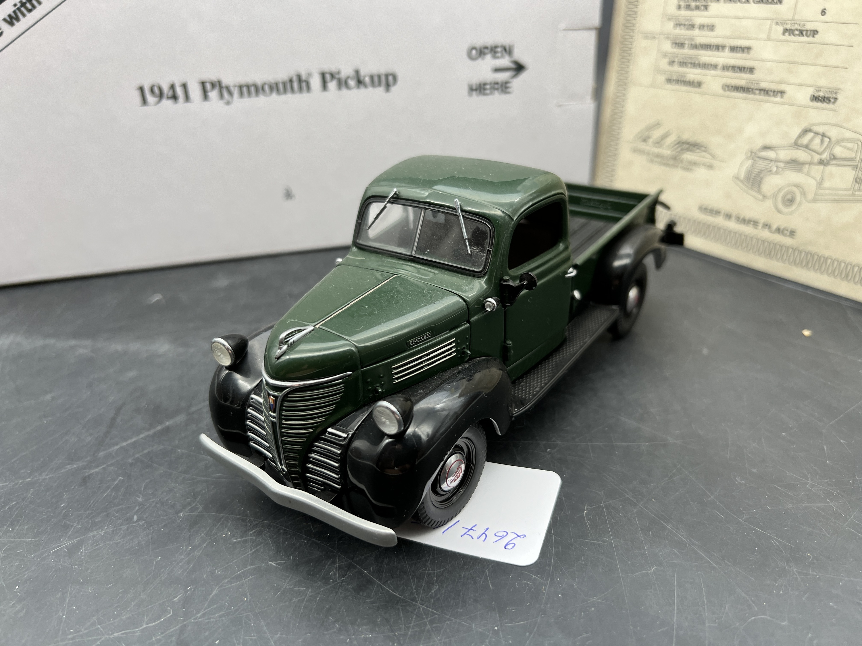 Danbury Mint Model 1/24è, Voiture Plymouth PT 125 4112 Pickup green/black 1941, boite + certificat