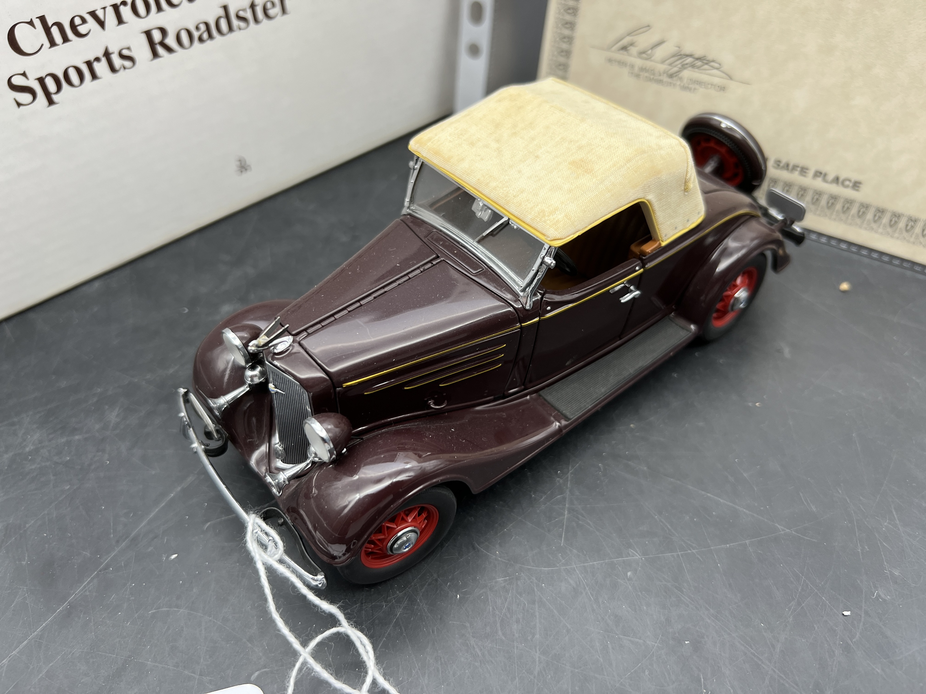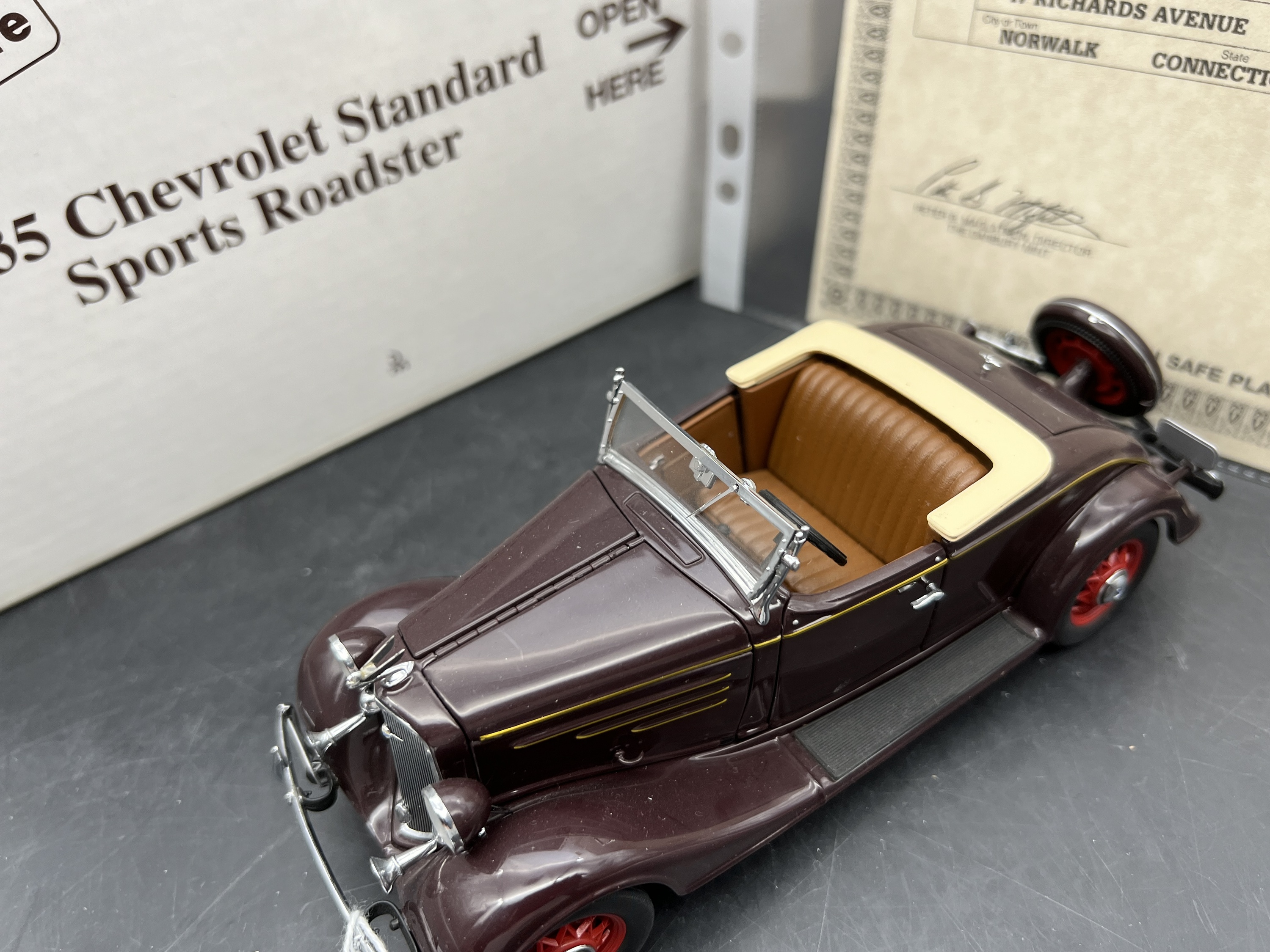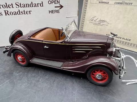 Danbury Mint Model 1/24è, Voiture Chevrolet STandard Sports Roadster REgent Maroon 1935, boite + certificat