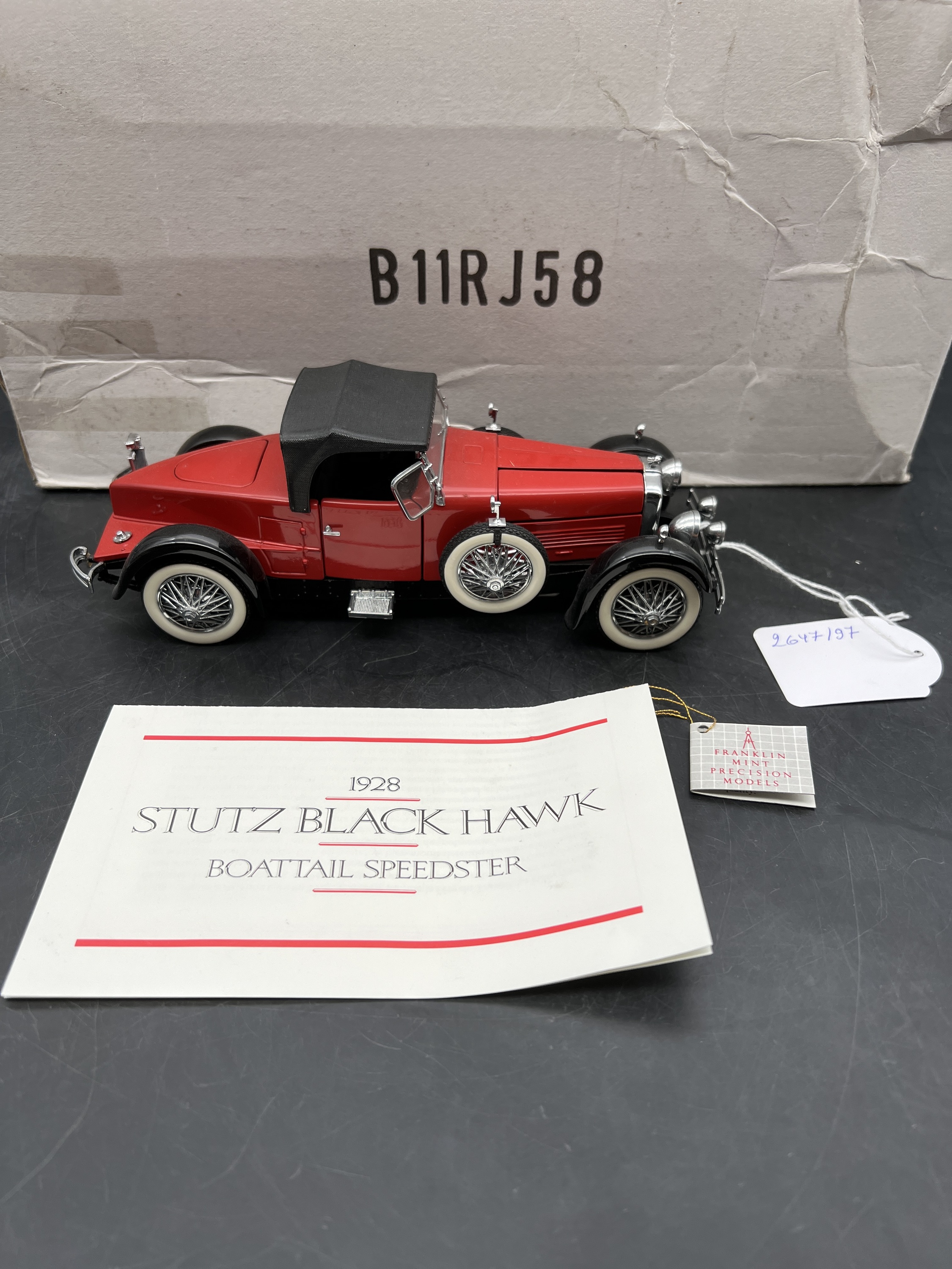 Franklin Mint Model 1/24è, Voiture Stutz black Hawk Boattail Speedster 1928, boite + papier