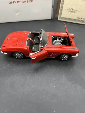 Danbury Mint Model 1/24è, voiture Chevrolet Corvette rouge convertible 1962, boîte + certificat + explicatif