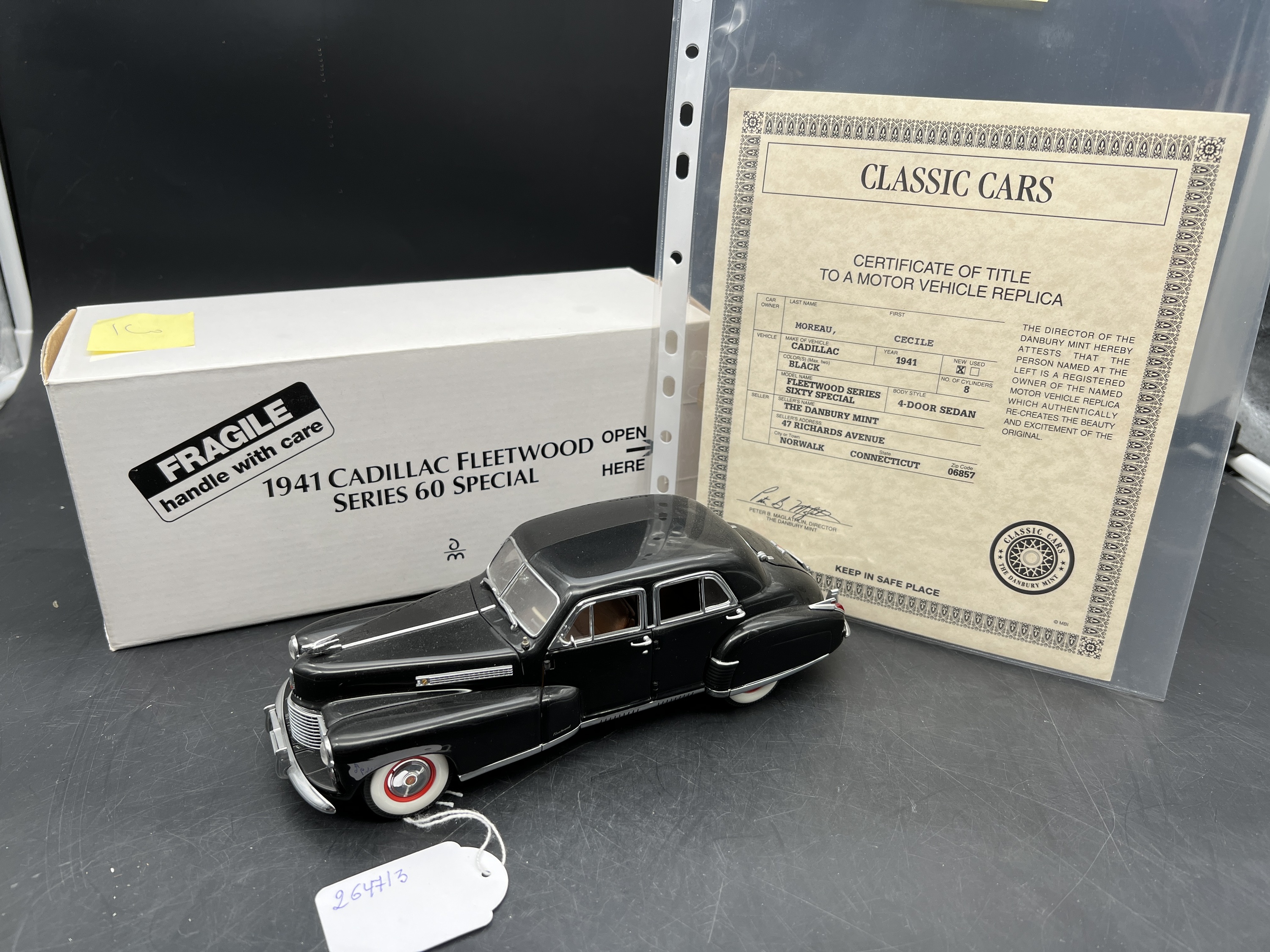 Danbury Mint Model 1/24è, voiture Cadillac Fleetwood series sixty special noir 1941, 4-door sedan, boîte + certificat