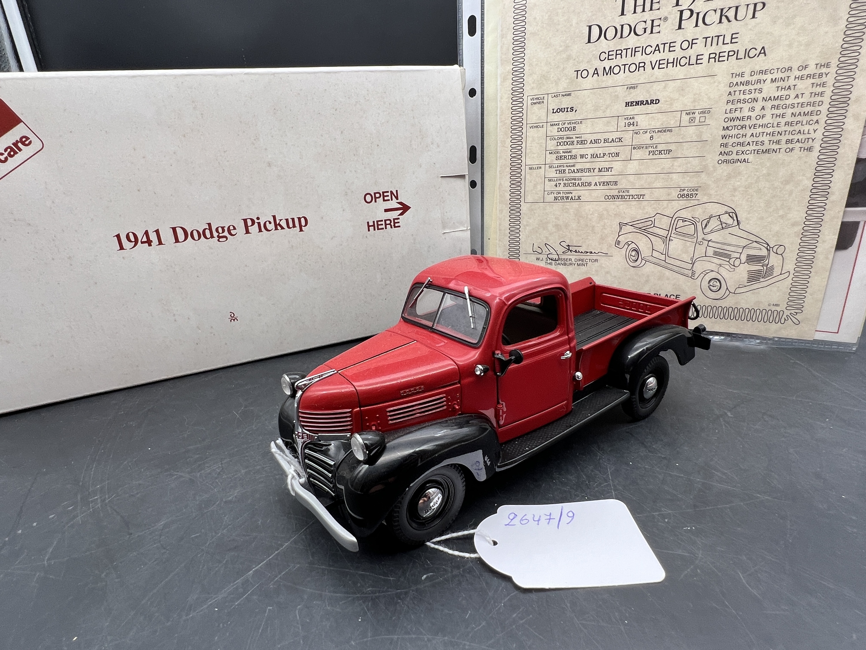 Danbury Mint Model 1/24è, voiture Dodge série WC Half-ton rouge et noir Pickup 1941, boîte + certificat + explicatif
