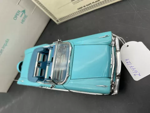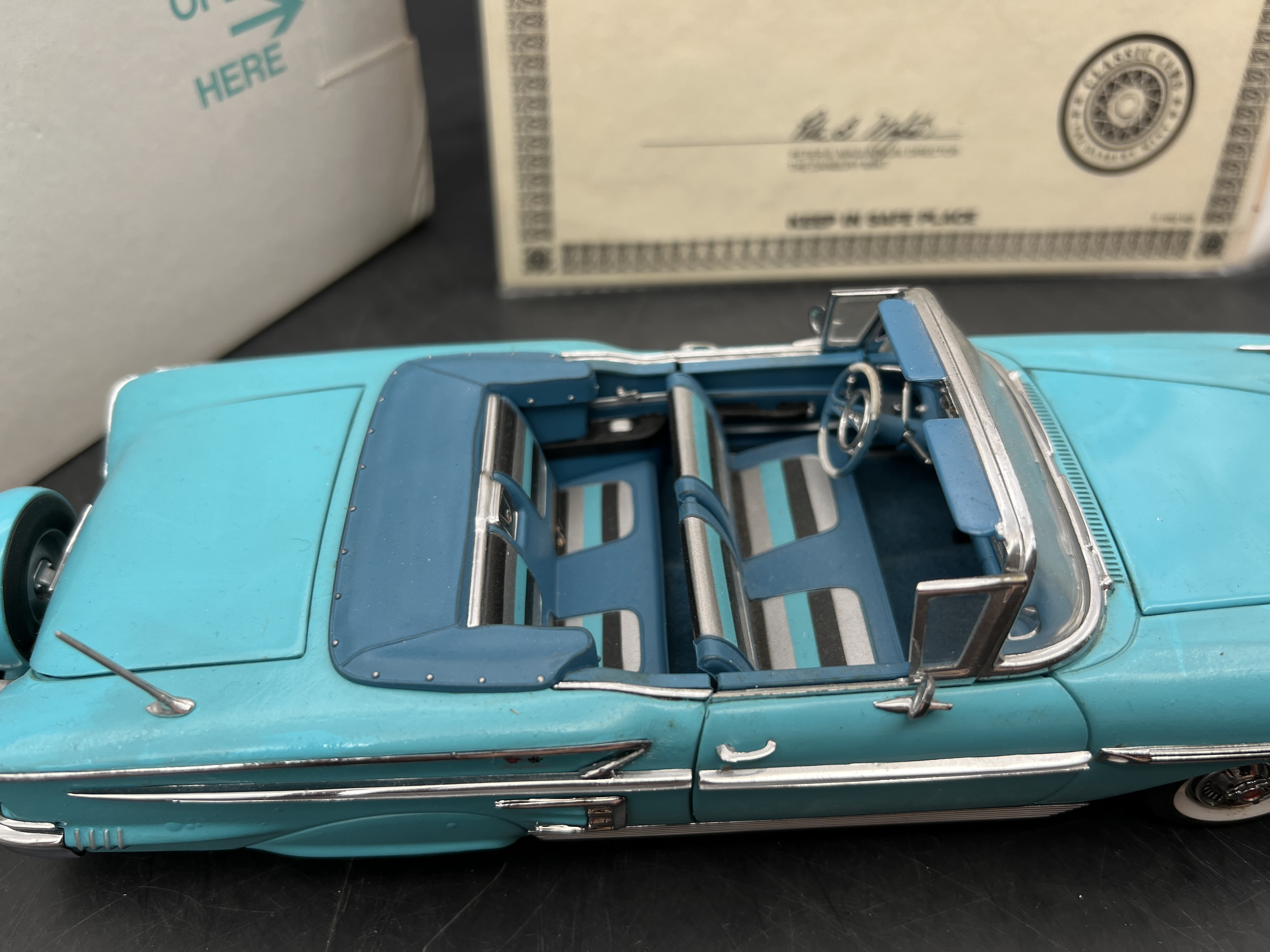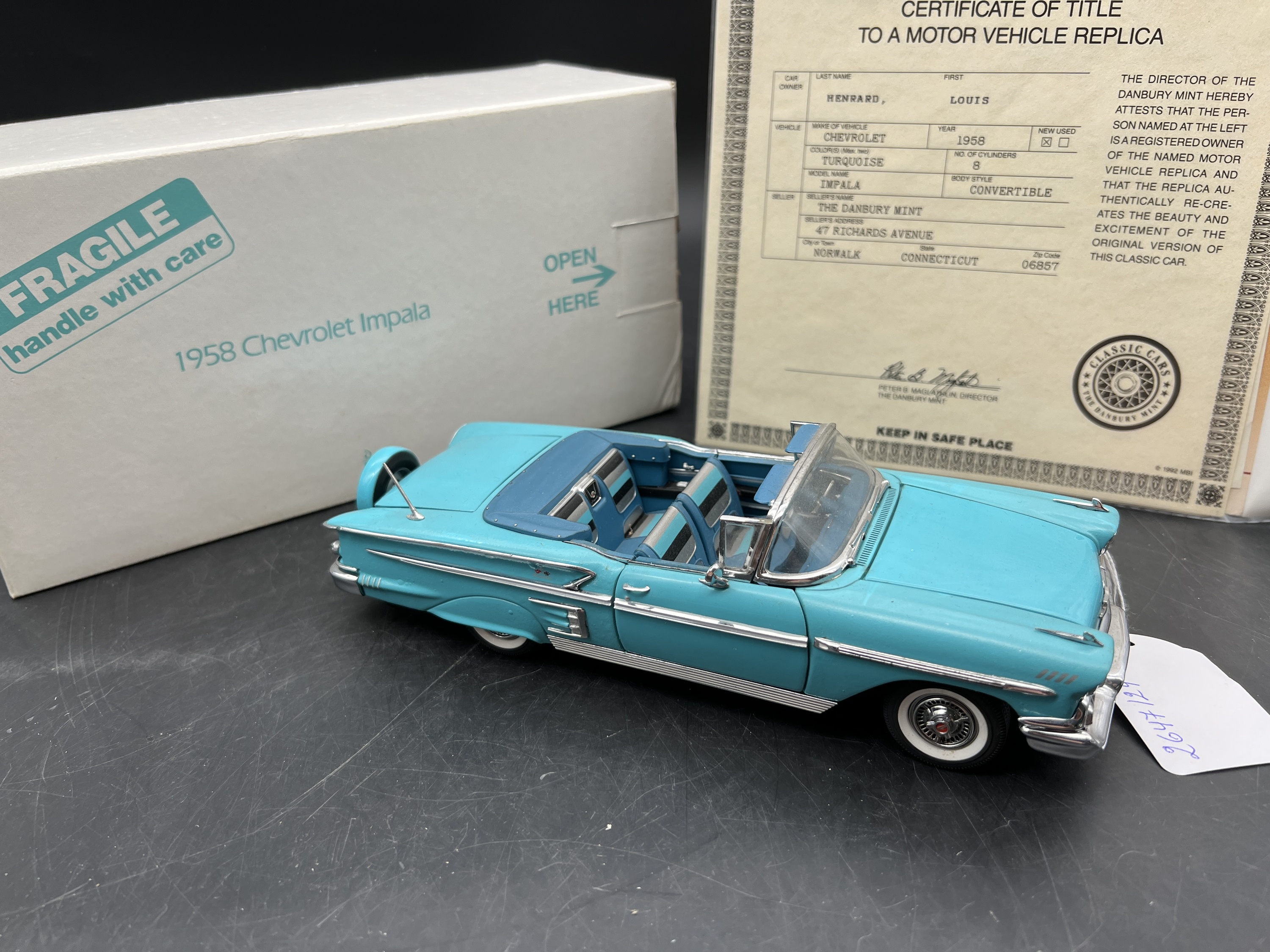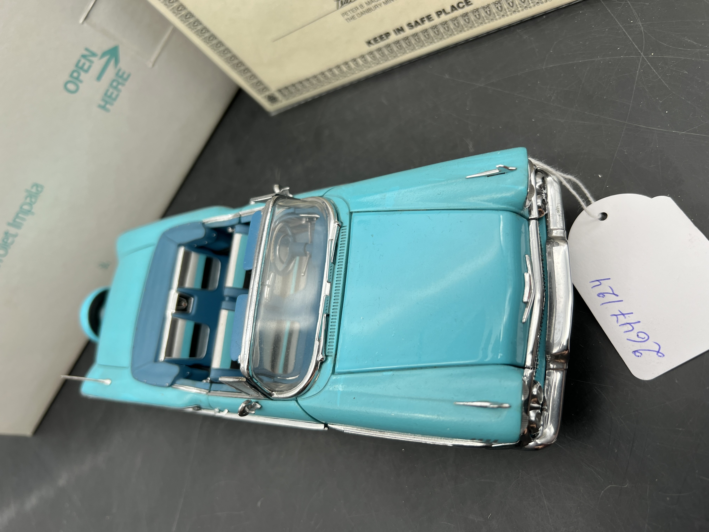 Danbury Mint Model 1/24è, Voiture Chevrolet Impala turquoise 1958 convertible, boîte + certificat + explicatif