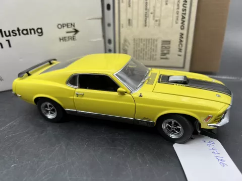 Danbury Mint Model 1/24è, Voiture Ford Mustang Mach 1 bright Yellow 1970, boîte + certificat