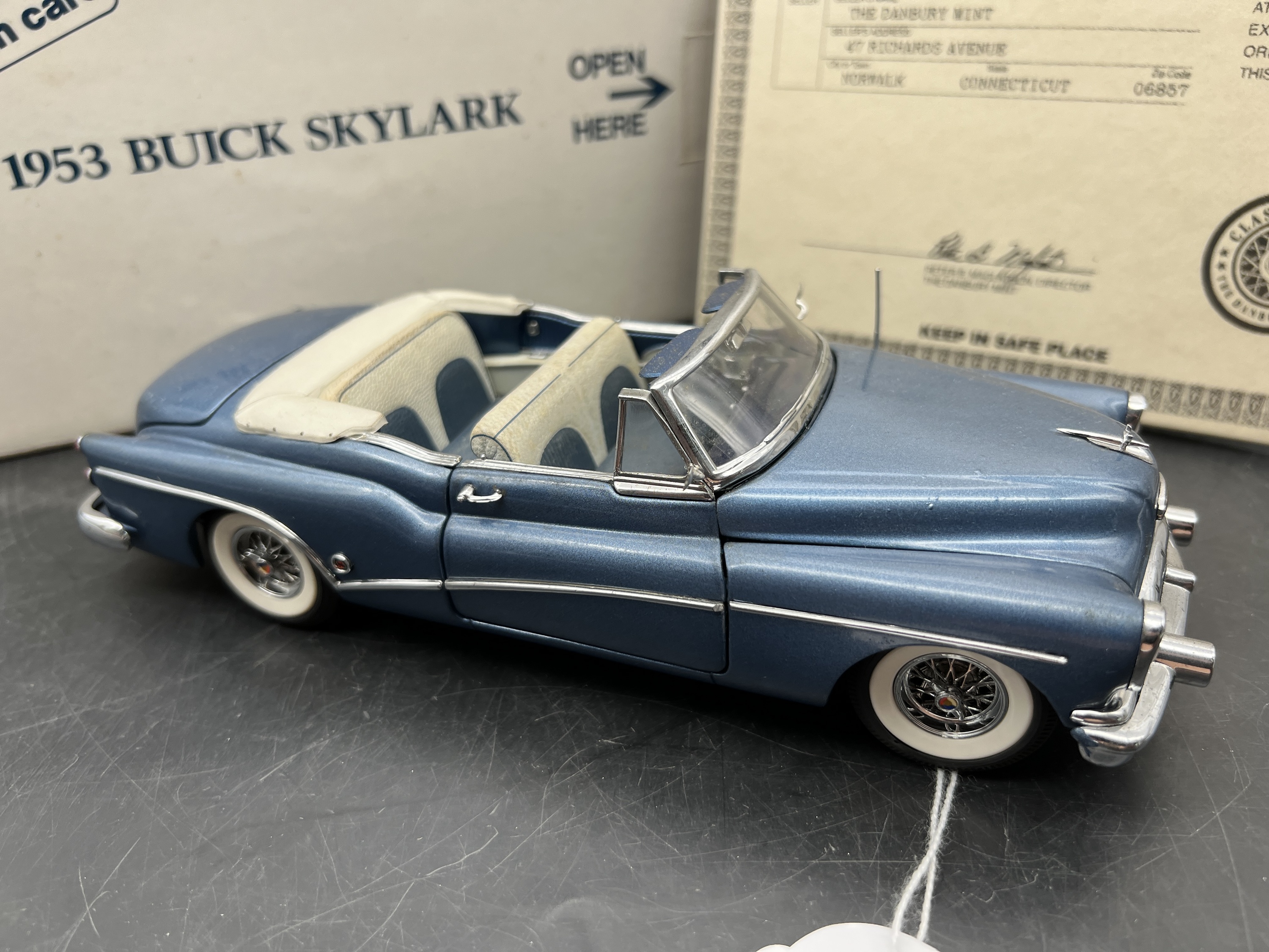 Danbury Mint Model 1/24è, Buick Skylark convertible blue 1953, boîte + certificat + explicatif