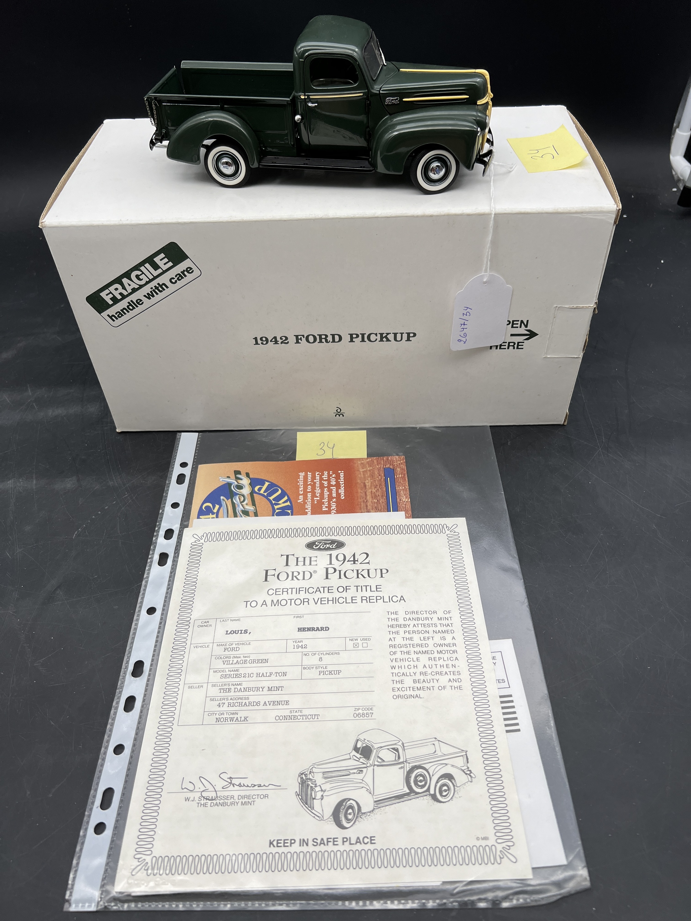 Danbury Mint Model 1/24è,Voiture Ford Pickup série 21C Half-ton village green 1942, boîte + certificat + explicatif