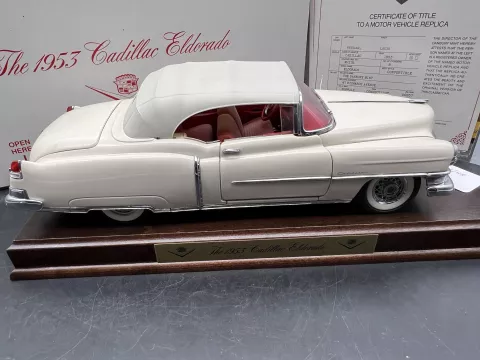 Danbury Mint Model 1/24è, Voiture Cadillac Eldorado convertible blanche 1953, boite + certificat + plaque de présentation