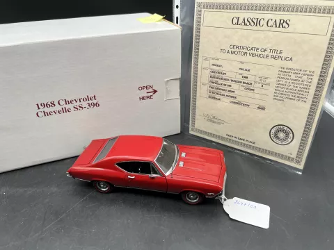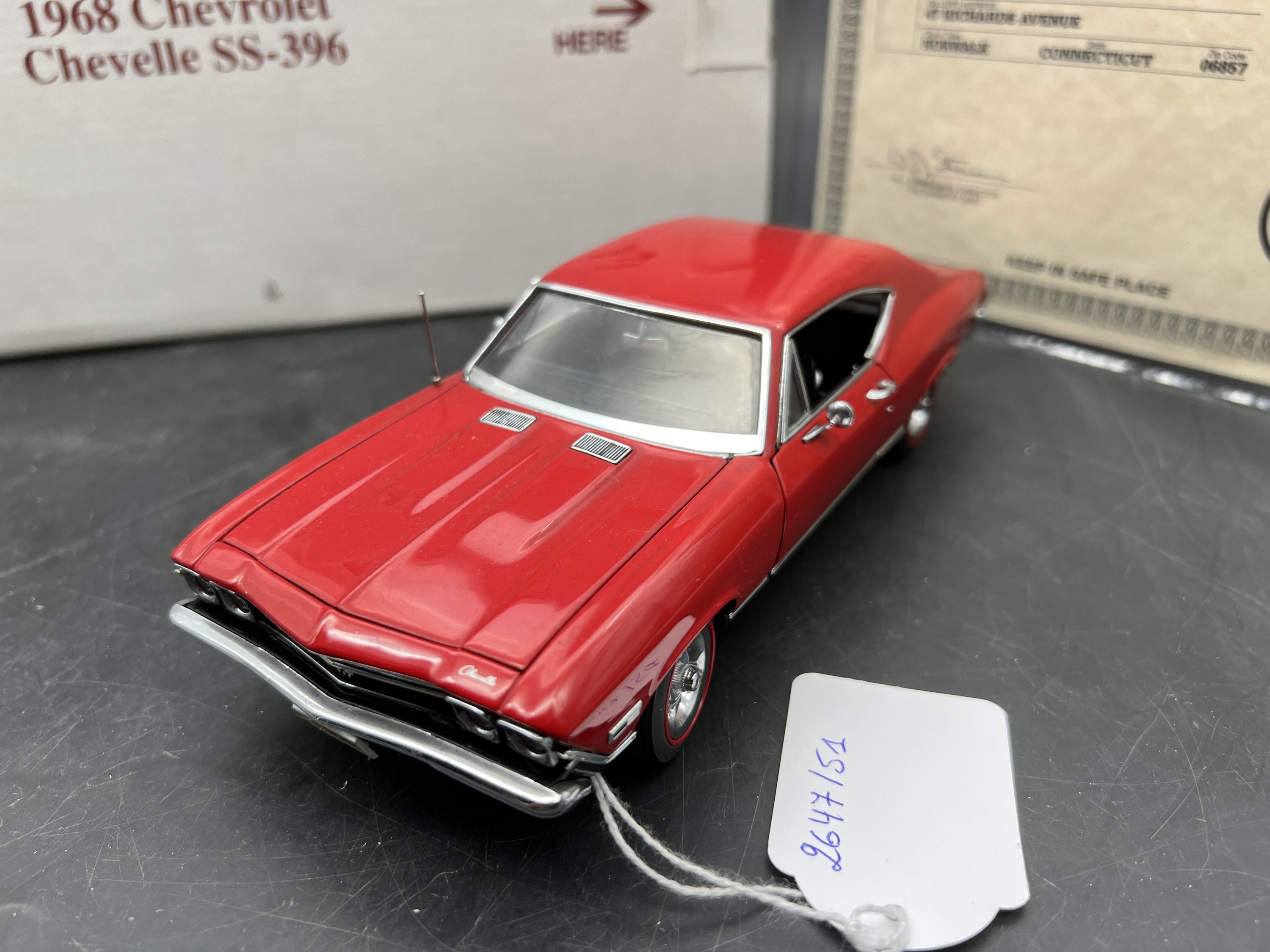 Danbury Mint Model 1/24è, Voiture Chevrolet chevellle SS 396 coupé Red/black 1968, boite + certificat