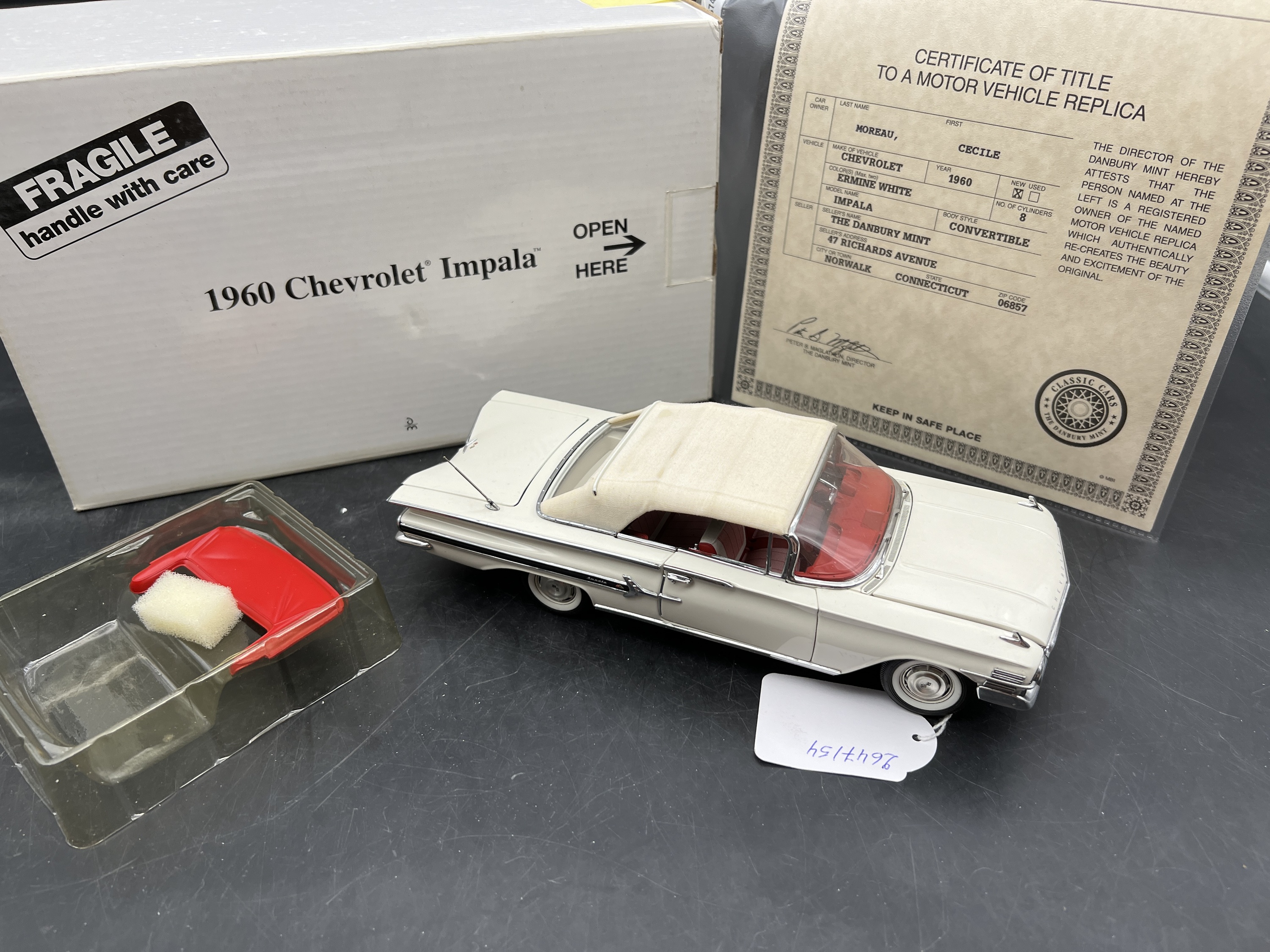 Danbury Mint Model 1/24è, Voiture Chevrolet Impala convertible Ermine White 1960, boite + certificat
