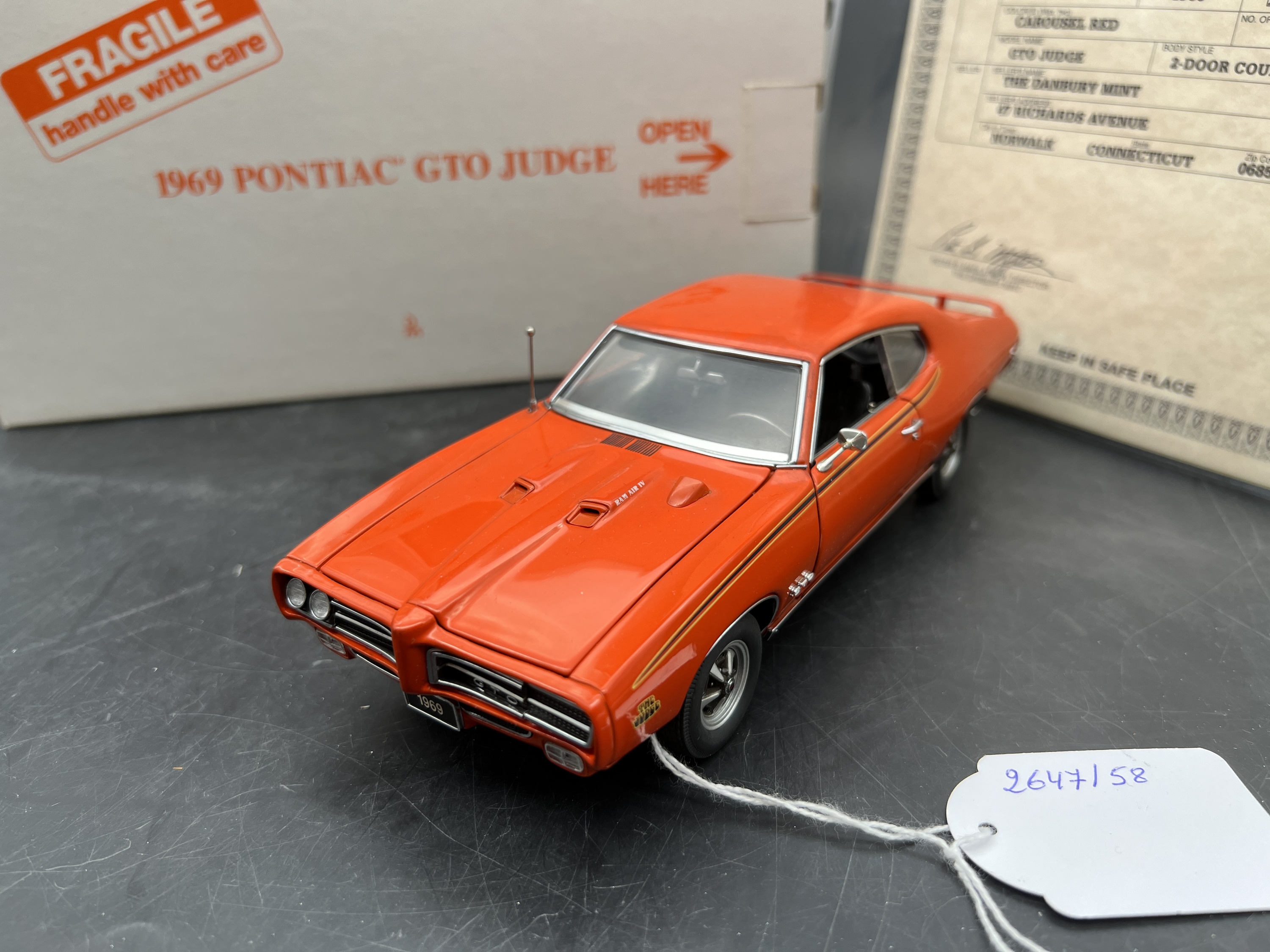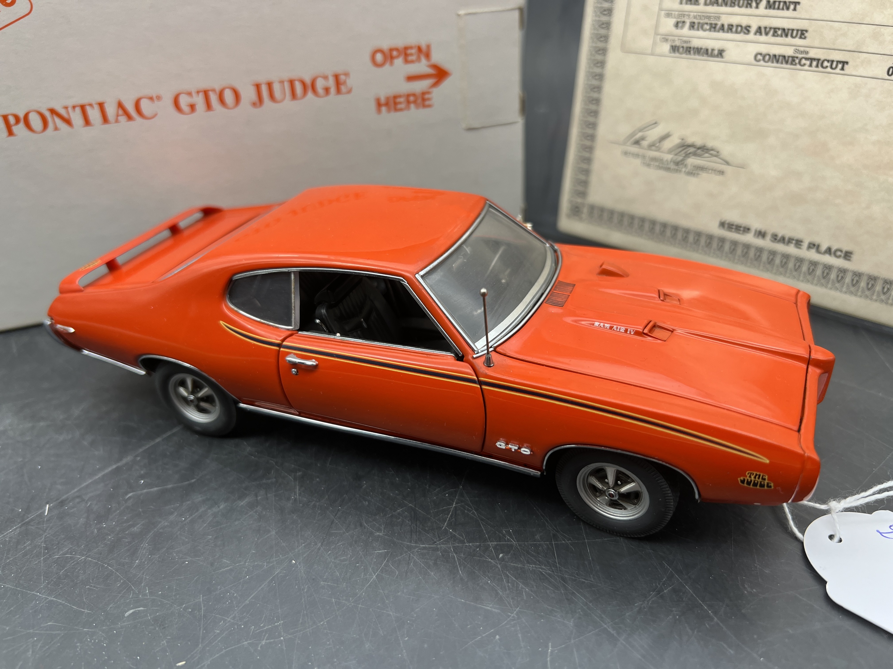 Danbury Mint Model 1/24è, Voiture Pontiac GTO Judge 2 - Door coupe Carousel red 1969, boite + certificat