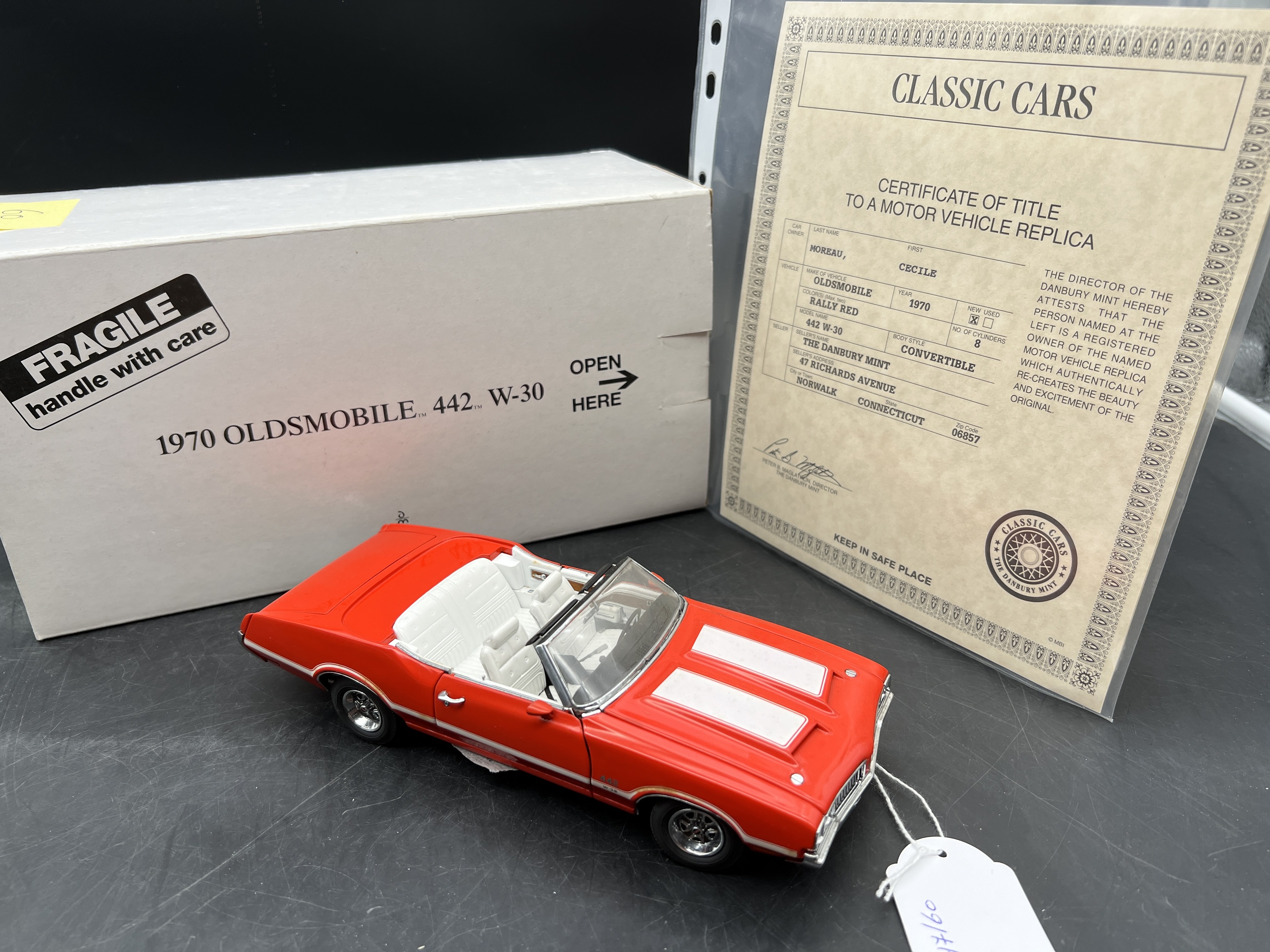 Danbury Mint Model 1/24è, Voiture Oldsmobile 442W-30 converticle Rally Red 1970, boite + certificat