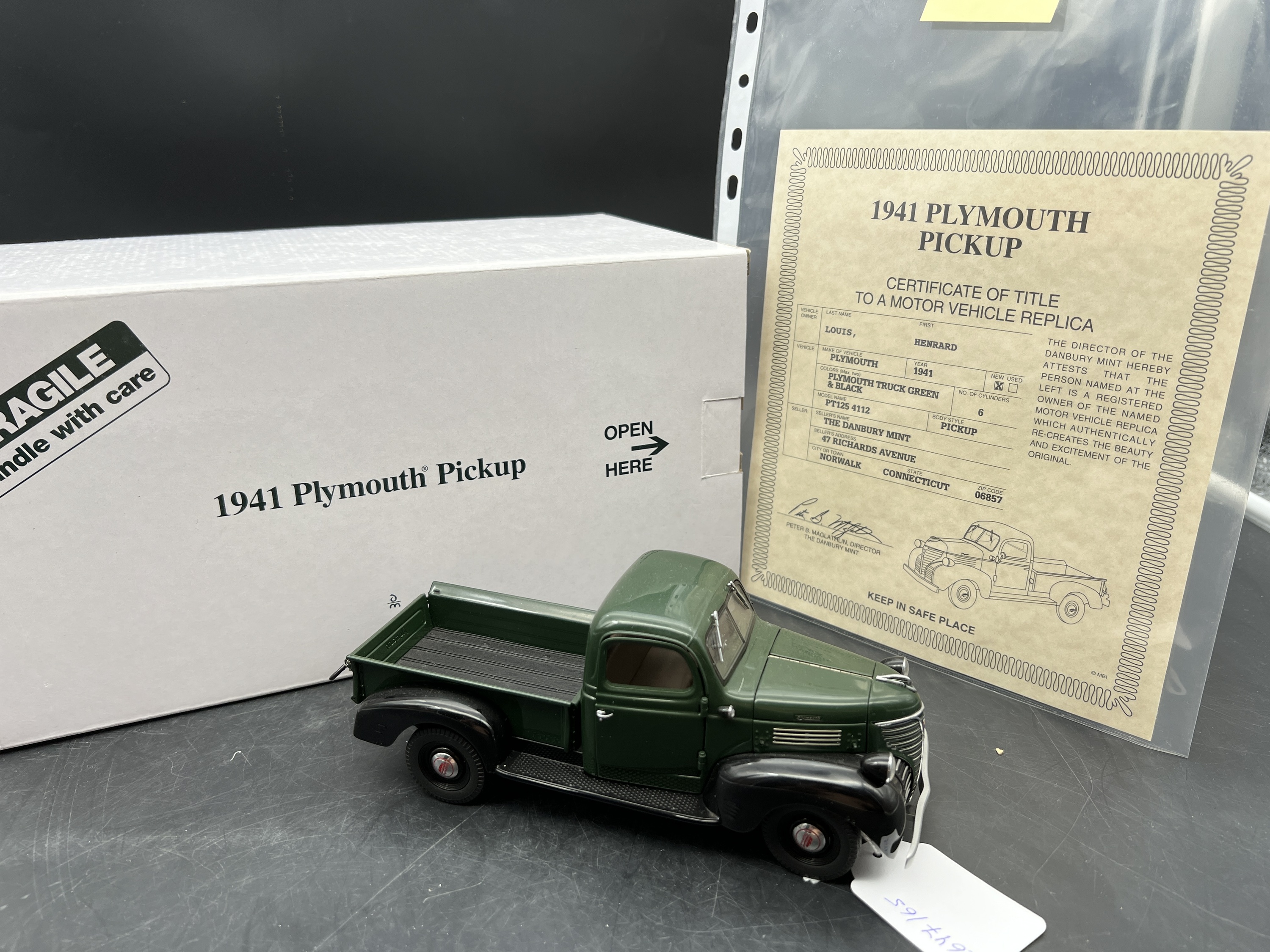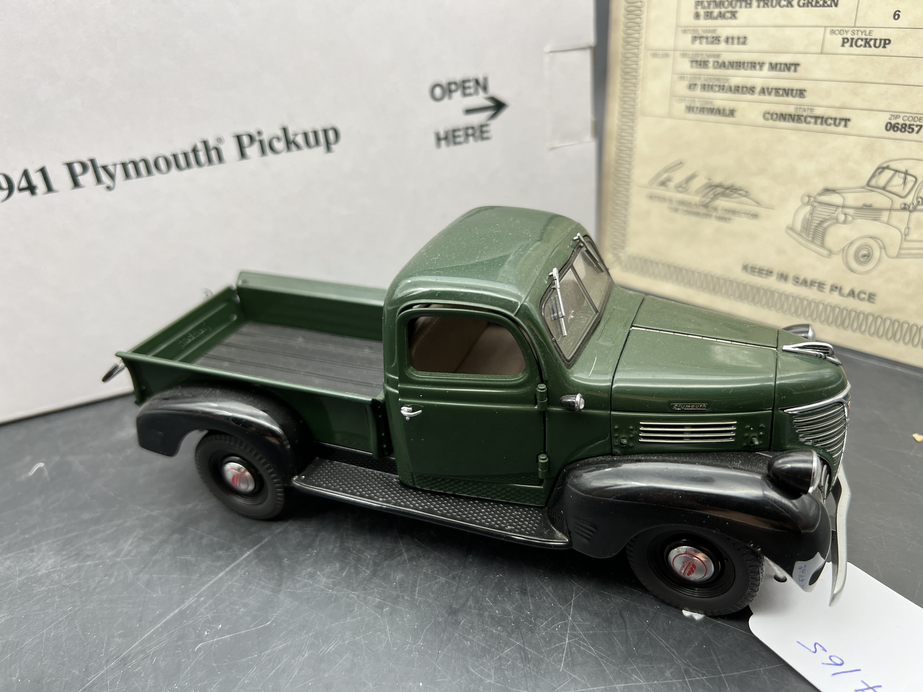 Danbury Mint Model 1/24è, Voiture Plymouth PT 125 4112 Pickup green/black 1941, boite + certificat