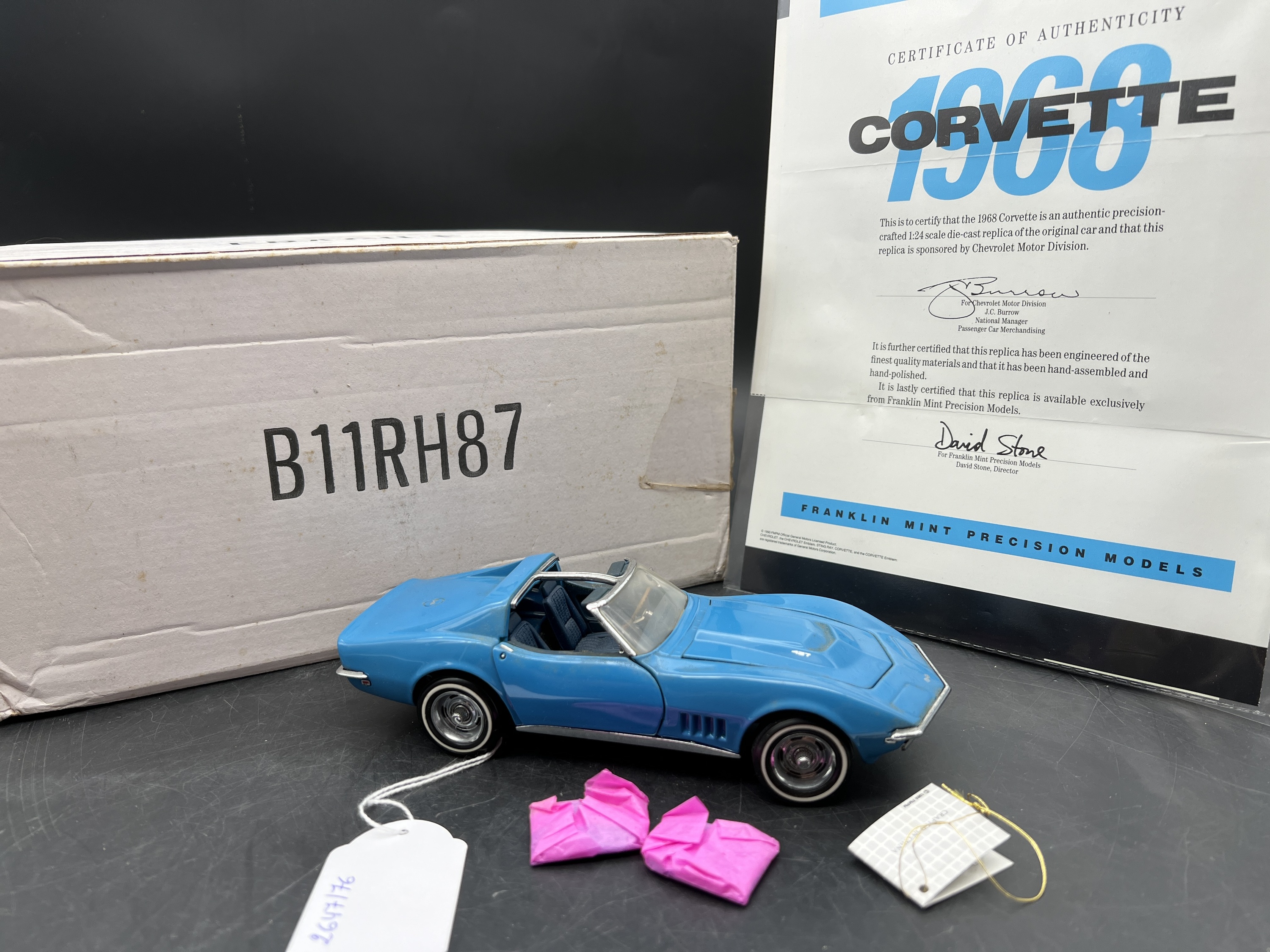 Franklin Mint Model 1/24è, Voiture Corvette 1968, boite + papier