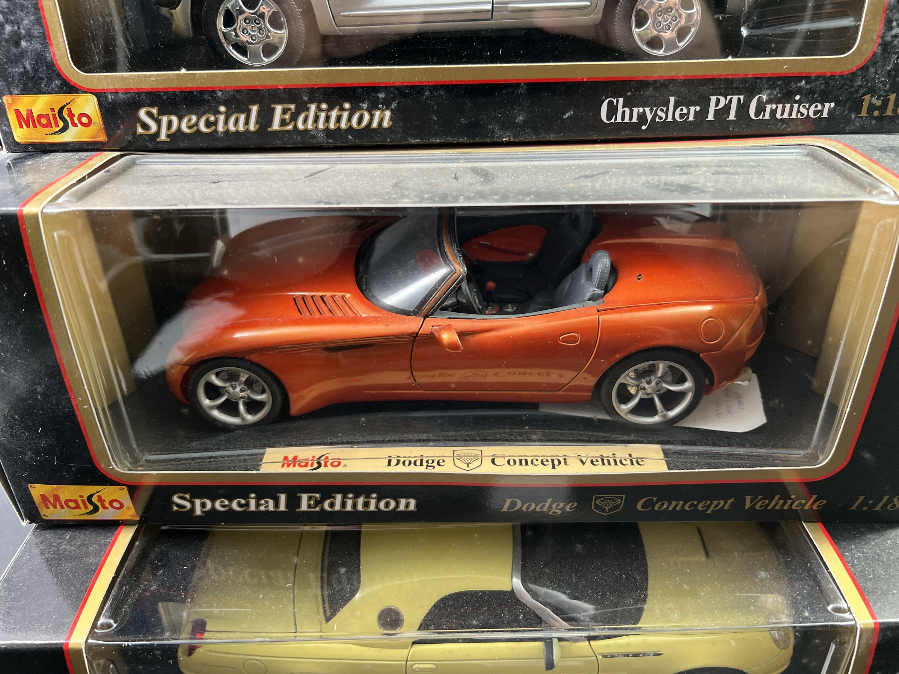 Lot de 3 Maisto Special Edition 1/18ème: Thunderbird Show Car, Dodge concept Vehicule, Chrysler PT Cruiser